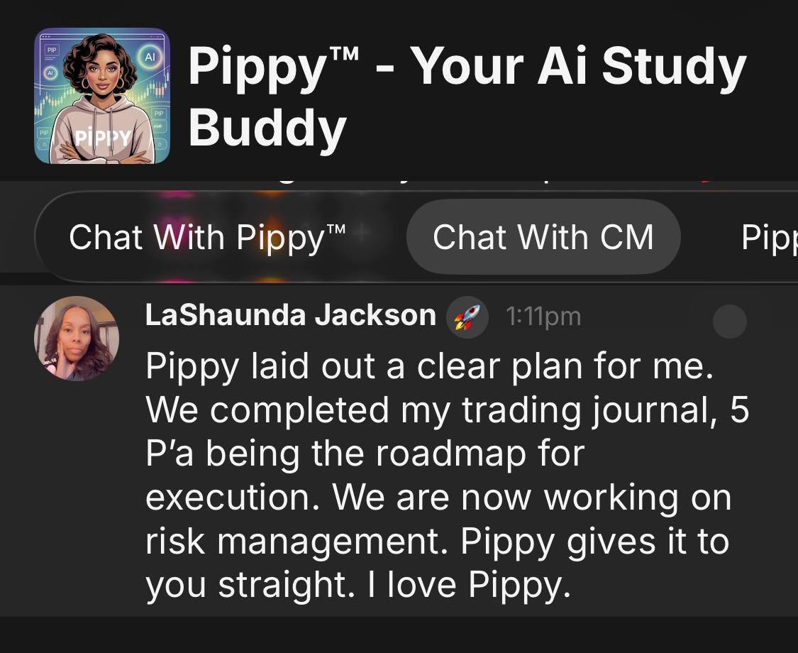 Pippy™ is the mentor I wish I had — patient, direct, and brutally honest — here to make trading finally make sense.